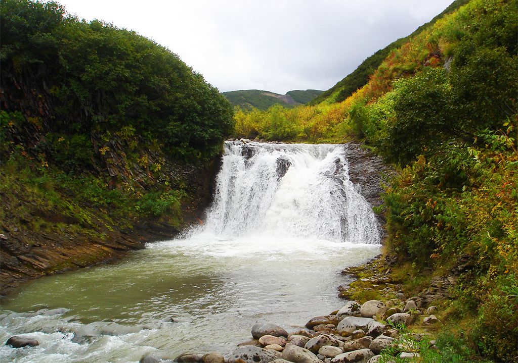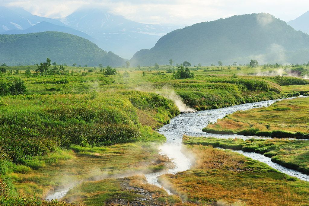 - 6 день: Восхождение к фумароле вулкана Дзензур. Выход на восхождение к фумароле вулкана Дзензур в 9.00. Переход к ручью Желоб. Тропа проходит вдоль ручья по застывшему лавовому потоку. Восхождение к фумароле вулкана Дзензур, высота около 1400м. Панорама Жупановского вулкана, долины реки Налычево, Авачинской гряды вулканов. Легкий обед. Спуск в приют к 18.00. Купание в источниках. Ночлег в домике. Дневной переход 25 км. Завтрак, обед, ужин.