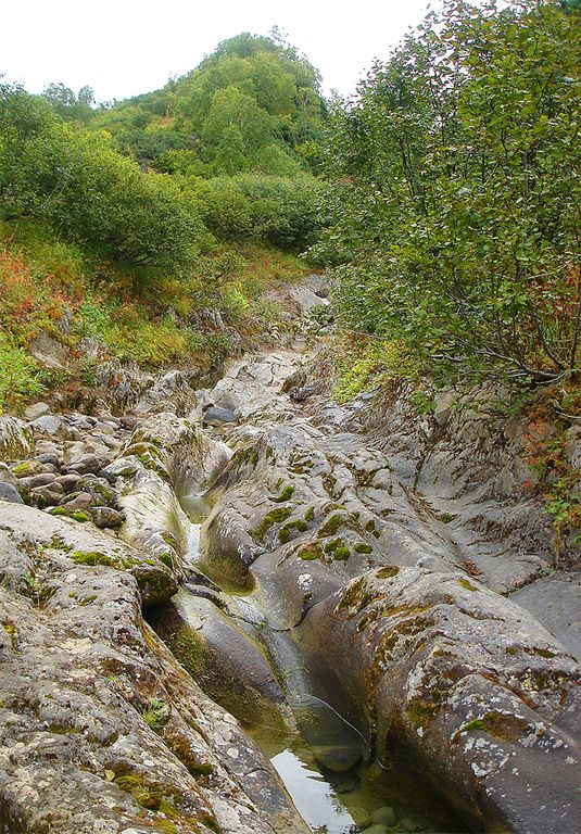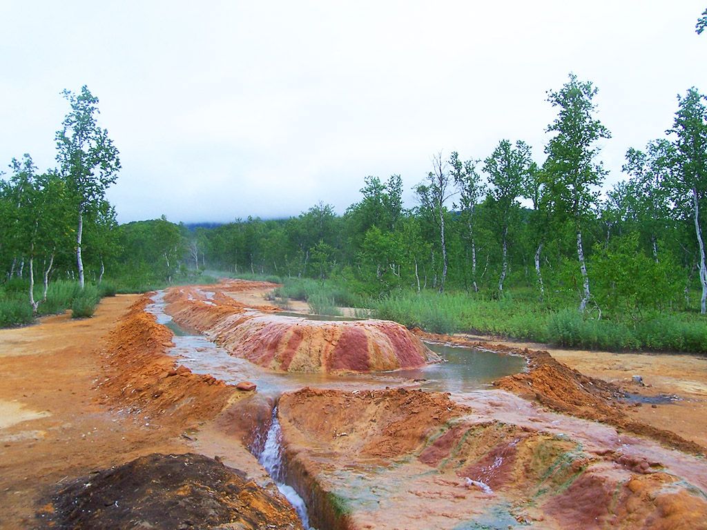 - 4 день: Пешеходная экскурсия к Аагским (Чистинским) минеральным источникам. Выход в 9.00. Переход налегке к Аагским (Чистинским) нарзанам (10 км.). Аагские нарзаны - минеральные источники вблизи потухшего вулкана Ааг. Вода источников принадлежит к редкому гидрокарбонатно-магниевому типу углекислых вод, ценных в бальнеологическом отношении. Отличная тропа. Несложный переход. Отличные виды на Авачинскую гряду вулканов и главного великана - вулкан Корякский(3456м.) Возвращение в приют к 18.00. Дневной переход 20 км. Ночлег в приюте. Завтрак, обед, ужин.