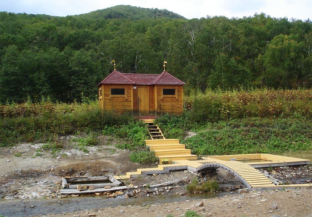 - 2 день: Переезд в Природный парк Налычево. Выезд из Петропавловска в 9.00. Переезд в Центральную часть парка Налычево, 8 -9 часов. Парк Налычево - один из самых известных и живописных уголков Камчатки. Парк был образован в 1995 г. Но туристический маршрут к Налычевским термальным источникам - один из первых на Камчатке. Площадь парка более 260.000 га. Это относительно доступный район для путешествий вблизи Петропавловска-Камчатского. Несмотря на близость парка, путь пешком в Центральную часть парка занимает 2 дня или полный день переезда на автомобиле по экстремальной лесной дороге. Четыре действующих вулкана – Дзендзур, Жупановский, Авачинский, Корякская и десяток потухших, плотно окружают Налычево. Здесь собраны почти все особенности камчатской природы: термальные источники, шипучие нарзаны, леса каменной березы, альпийские луга, высокие травы, живописные реки и озера и морское побережье. Здесь в любой момент можно встретить белоплечего орлана, бурого медведя и других обитателей дикой среды. А с недавних пор и гостя из Северной и Центральной Камчатки - гигантского камчатского лося. Большая часть пути проходит по лесной грунтовой дороге. В пути несколько переездов через горные реки. Средняя скорость автомобиля 20 км/час. Остановки для отдыха. Великолепные пейзажи и панорама окружающих вулканов. Обед в пути. Прибытие к 18.00. Переход в приют "Центральный".1,5 км. Размещение в приюте. Ночлег в домике на группу. Купание в термальных источниках. Завтрак, обед, ужин.